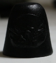 Coal thimble with a miner on the front. Made from Welsh coal.